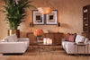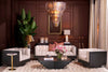 Modern Calm in Sculpted SymmetrySoft sculpted seating, warm brass accents, and greenery create refined balance