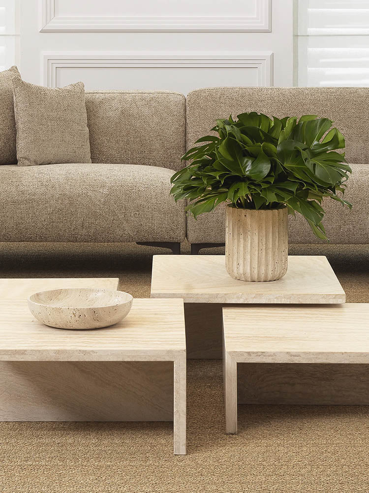 A refined living space shaped by soft curves, warm neutrals, and sculptural balance. This room blends contemporary comfort with a calm, elevated aesthetic—lush upholstery, natural stone accents, and generous greenery create a harmonious interplay of texture and form. The palette stays intentionally understated, allowing the architecture and materials to speak with quiet confidence. Designed as a serene retreat for conversation, relaxation, and everyday luxury, this curated environment embodies effortless modern elegance.