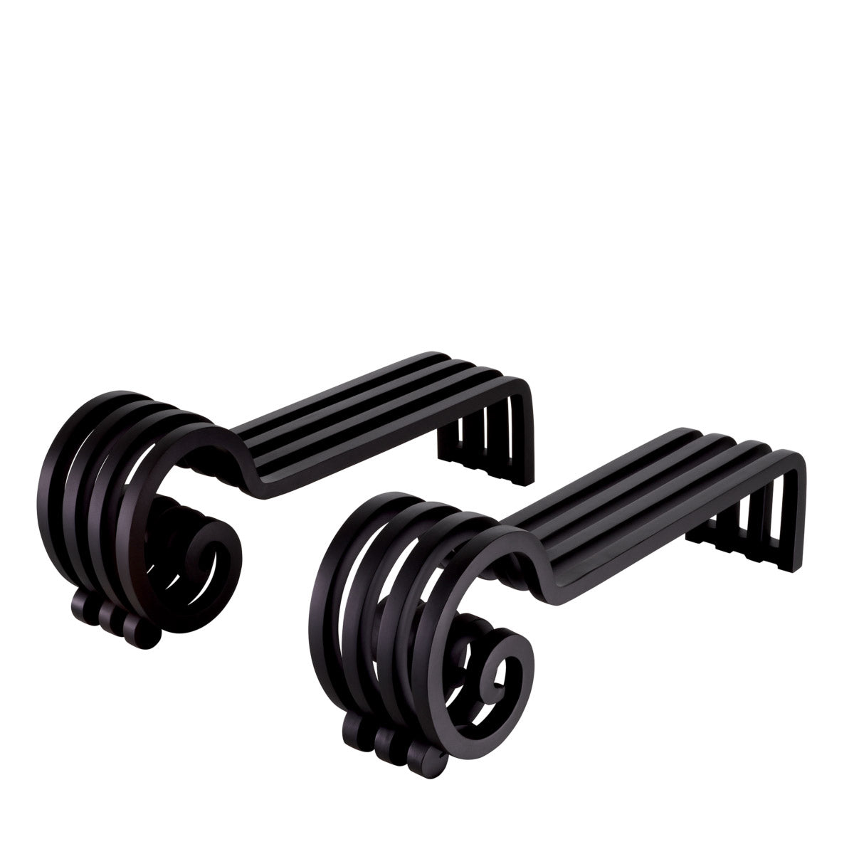 Andiron Mardor black finish set of 2 by Eichholtz is a refined design that introduces a quietly luxurious presence into the room. Enjoy the charm of a cosy cracking fire with this 2-piece set of Mardor Andirons.