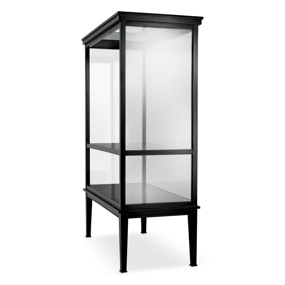 The design is crafted in Glass, Wood, completed with Black veneer, clear glass, showcasing the brand’s focus on texture and depth. Subtle detailing and intended for indoor use/dry locations only ensure it sits naturally within layered, thoughtfully curated schemes. Styled on its own or paired with complementary Eichholtz creations, this sophisticated cabinet quietly enhances consoles, shelving, and accent surfaces. Each detail is considered to balance proportion, surface, and silhouette, resulting in an object that feels at once contemporary and timeless. The overall impression is one of understated opulence, allowing the surrounding architecture, art, and lighting to complete the story of the space.