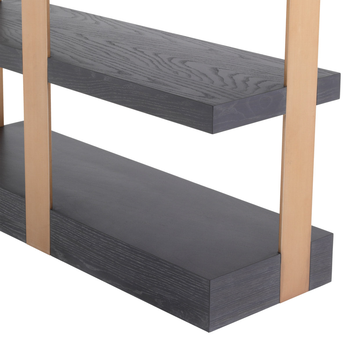 (Charcoal Grey Crown Oak Veneer, Brushed Brass Finish, Metal, Wood)