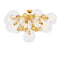 Beautiful hand blown clear glass globes adorn the gold finished frame. Lit with LED antique reproduction bulbs, this vintage style flushmount puts a retro spin on energy efficient lighting.