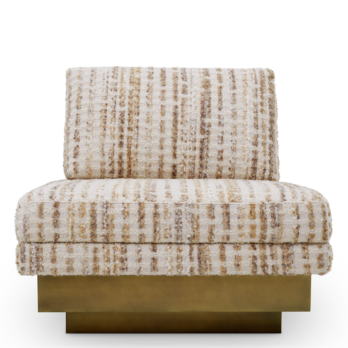 Without arms and an antiqued-brass base, the chair is a unique, modern shape that fits seamlessly into any elevated space. Place it next to your Eichholtz sofa for a harmonious look and feel in your living room.