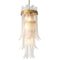 Each hand-cast glass “feather” shimmers with subtle iridescence, suspended in a cascading formation that recalls the plumed fans and jeweled headdresses of flapper-era soirées.
