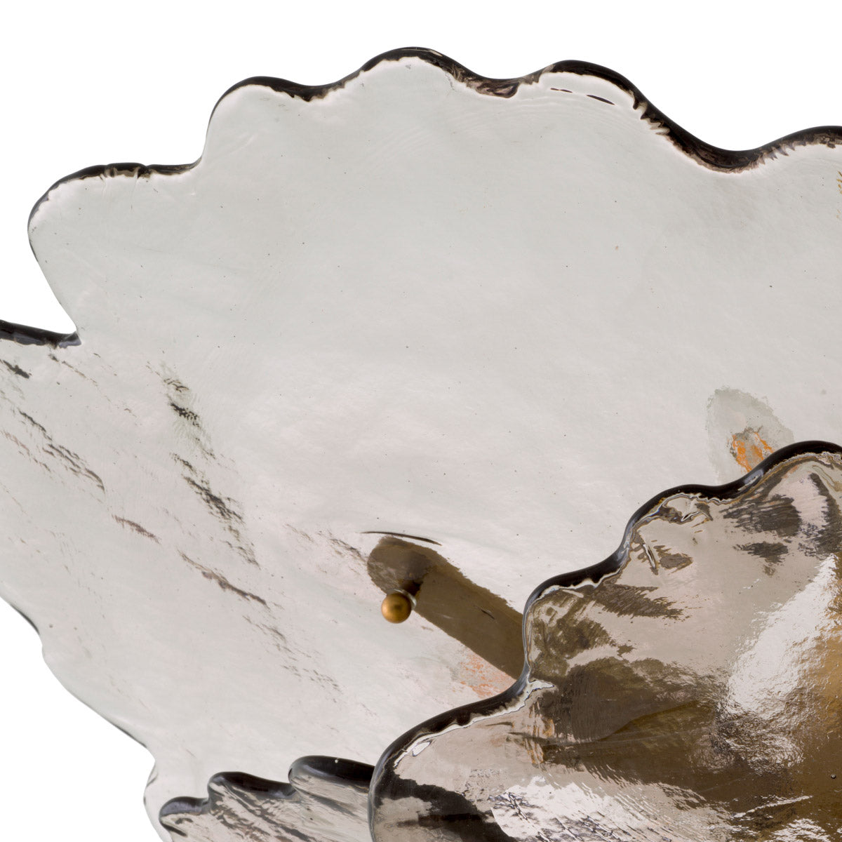 Each tier features handmade smoke glass reminiscent of petals, with an antique brass finish that provides a timeless elegance. Crafted to Eichholtz standards, it balances timeless European sensibility with modern ease — a statement design that layers comfortably into living, dining, or bedroom settings.