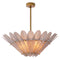 Provided with an antique brass finish, this Mid-Century Modern ceiling pendant is suspended from a rod and matching canopy. The fixture is adorned with a shade that is made up of ‘flower petals’ of translucent handmade glass.
