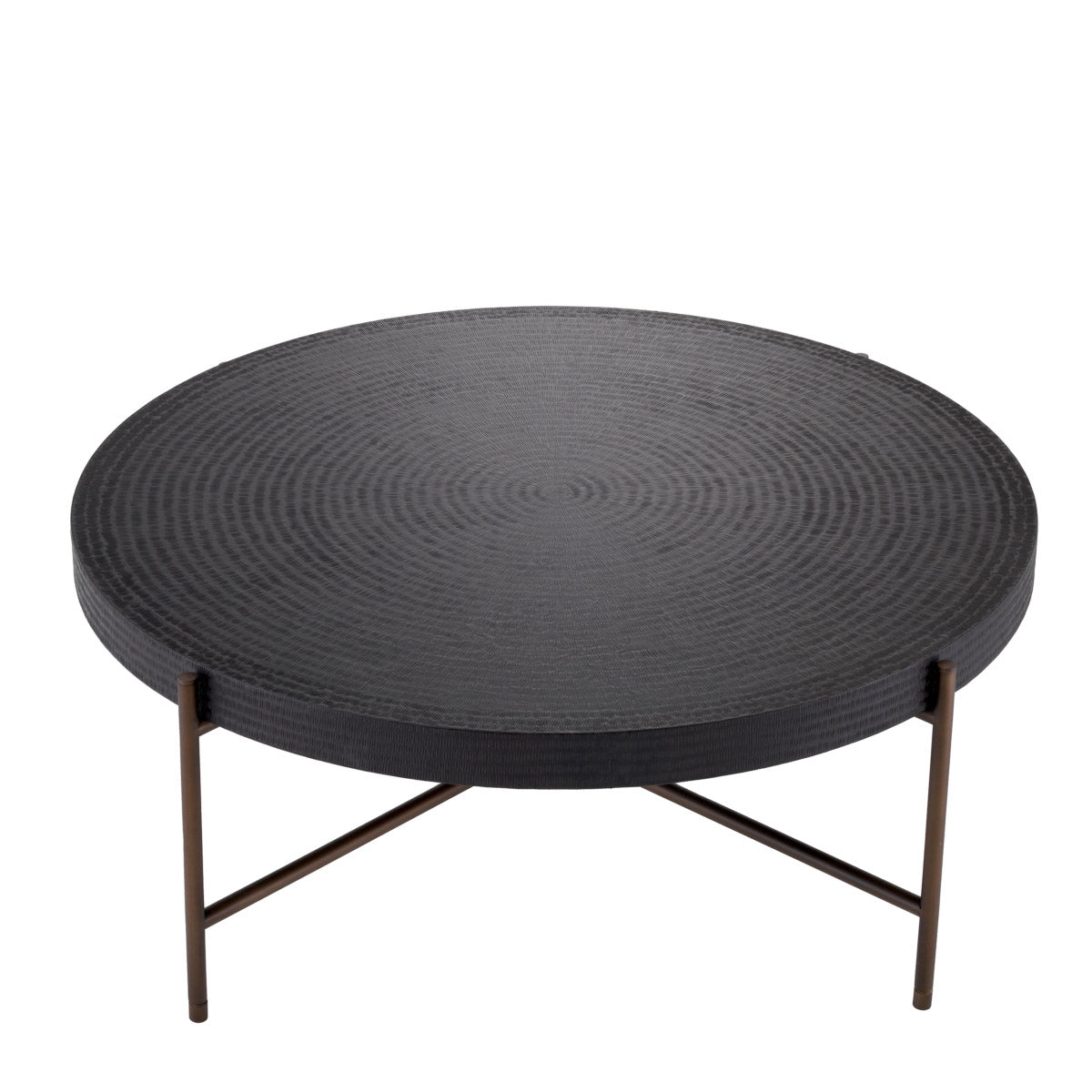 Made entirely of metal, the frame has a bronze finish whereas the tabletop has a gunmetal finish. Reminiscent of a slice of tree trunk with annual rings, it will bring a natural feel into your living area.
