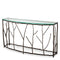 Featuring a superb branch-like frame with a medium bronze finish and a semi-circular clear glass top, this console is great for showcasing everything from picture frames to flower arrangements. Crafted to Eichholtz standards, it balances timeless European sensibility with modern ease — a statement design that layers comfortably into living, dining, or bedroom settings.