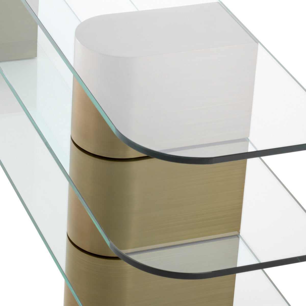 Featuring three open tempered glass shelves and a sturdy brushed brass finish frame, the 1930s art deco style is glamorous, elegant and noble. Versatility is multiplied as the Console Table Lunden can be used as an entrance table, a living room console or placed beside a window making it a minimalist-yet-functional design.