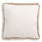 This square cushion has rounded corners and a soft Lyssa off-white cover with cream-colored fringes. It will make your bed or sitting area inviting in an instant.