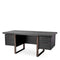 This stunning writing desk is characterised by two U-shaped legs in brushed brass finish holding two chests of drawers and a rectangular top in charcoal grey oak veneer. Crafted to Eichholtz standards, it balances timeless European sensibility with modern ease — a statement design that layers comfortably into living, dining, or bedroom settings.