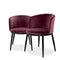 The black frames with tapered legs feature a round seat with a bent backrest in Cameron royal purple upholstery. Crafted to Eichholtz standards, it balances timeless European sensibility with modern ease — a statement design that layers comfortably into living, dining, or bedroom settings.