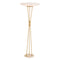 Its round travertine base with three antique brass stems provides an airy platform for a bowl-shaped lampshade of white glass. The elegant design makes this uplight suitable for many areas in your home, including your hallway, lounge or bedroom.