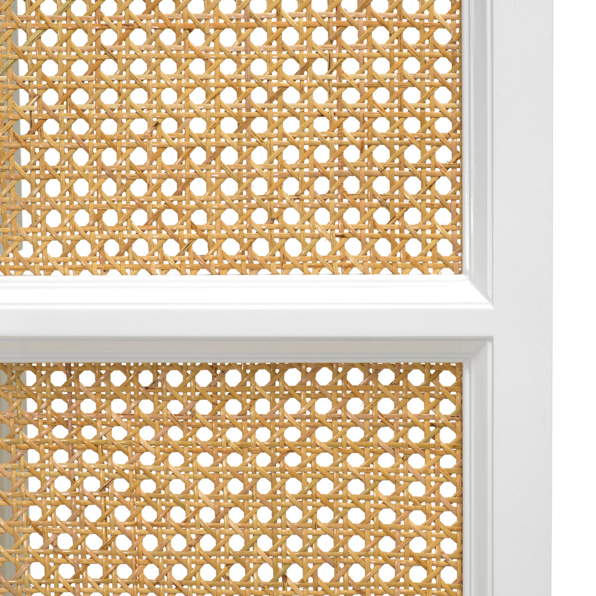 With Folding Screen Bahamas piano white finish, Eichholtz offers a refined design that anchors the interior with composed elegance. Elevate your sanctuary with the Folding Screen Bahamas in a pristine piano white finish, enhanced by natural cane accents and crystal-clear glass panels.