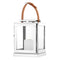 - These lantern are crafted from metal, finished in nickel finish,clear glass,tan leather, which creates their distinctive Eichholtz character.