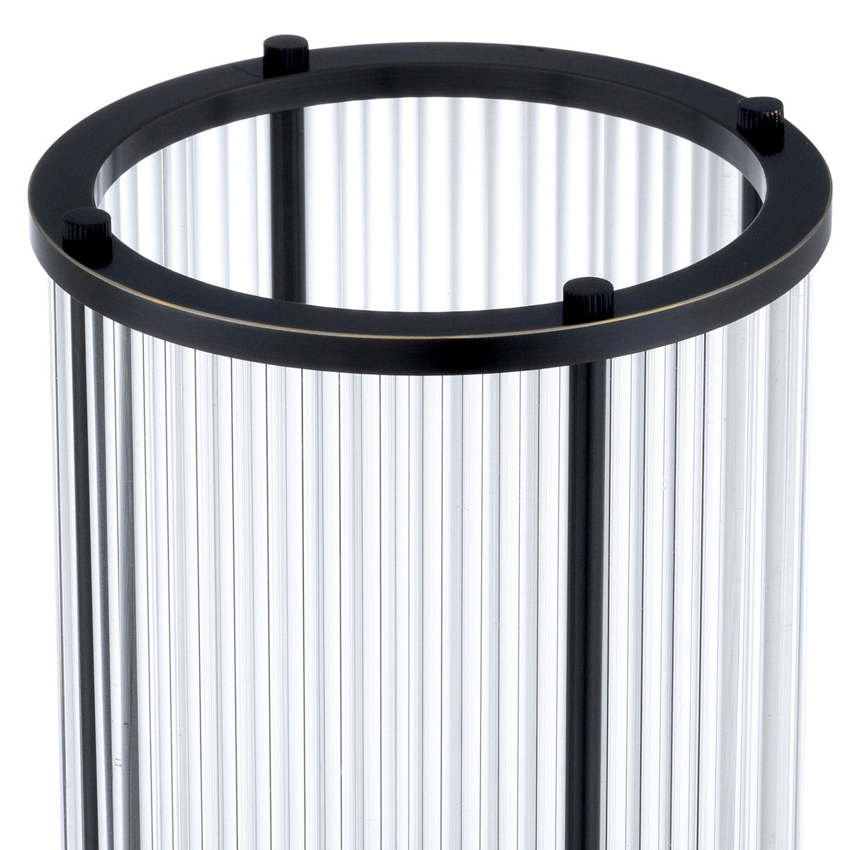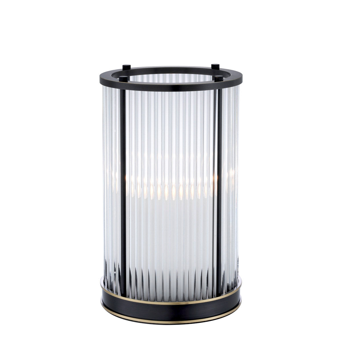 By pairing classic design with contemporary aesthetic, this refined hurricane exudes timeless appeal. It features a bronze highlight finish and clear glass rods for a soft and warm glow.