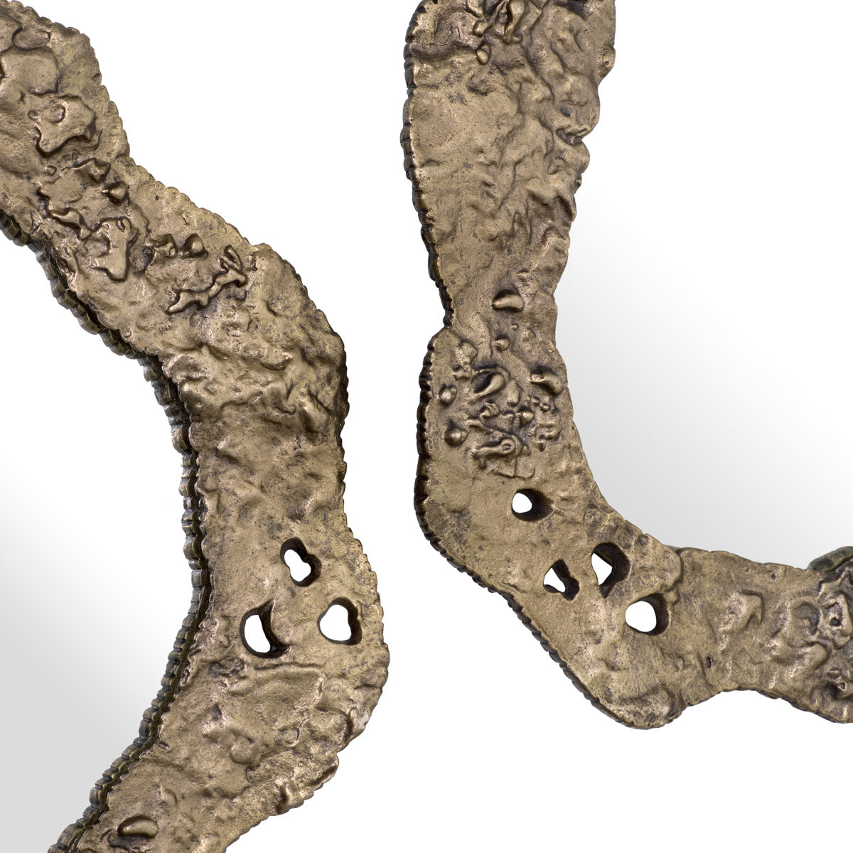 Organic shaped and finished in antiqued brass, these mirrors provide a luxurious yet timeless appeal. Crafted to Eichholtz standards, it balances timeless European sensibility with modern ease — a statement design that layers comfortably into living, dining, or bedroom settings.