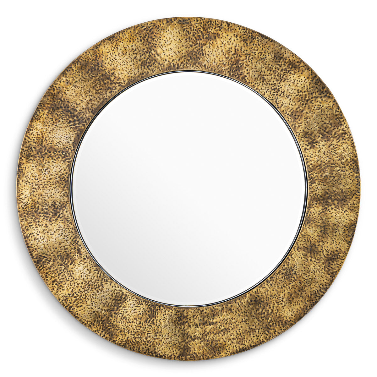 Explore the Eichholtz Ronin Mirror, a piece that reflects distinctive artistry in hand-hammered vintage brass.Like the Eichholtz Drayton table series, this beautiful mirror features the same hand-hammered vintage brass finish, showcasing subtle, organic indentations created by a skilled artisan.