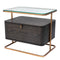 - Finish: Mocha Crown Oak Veneer, Brushed Brass Finish, Clear Glass