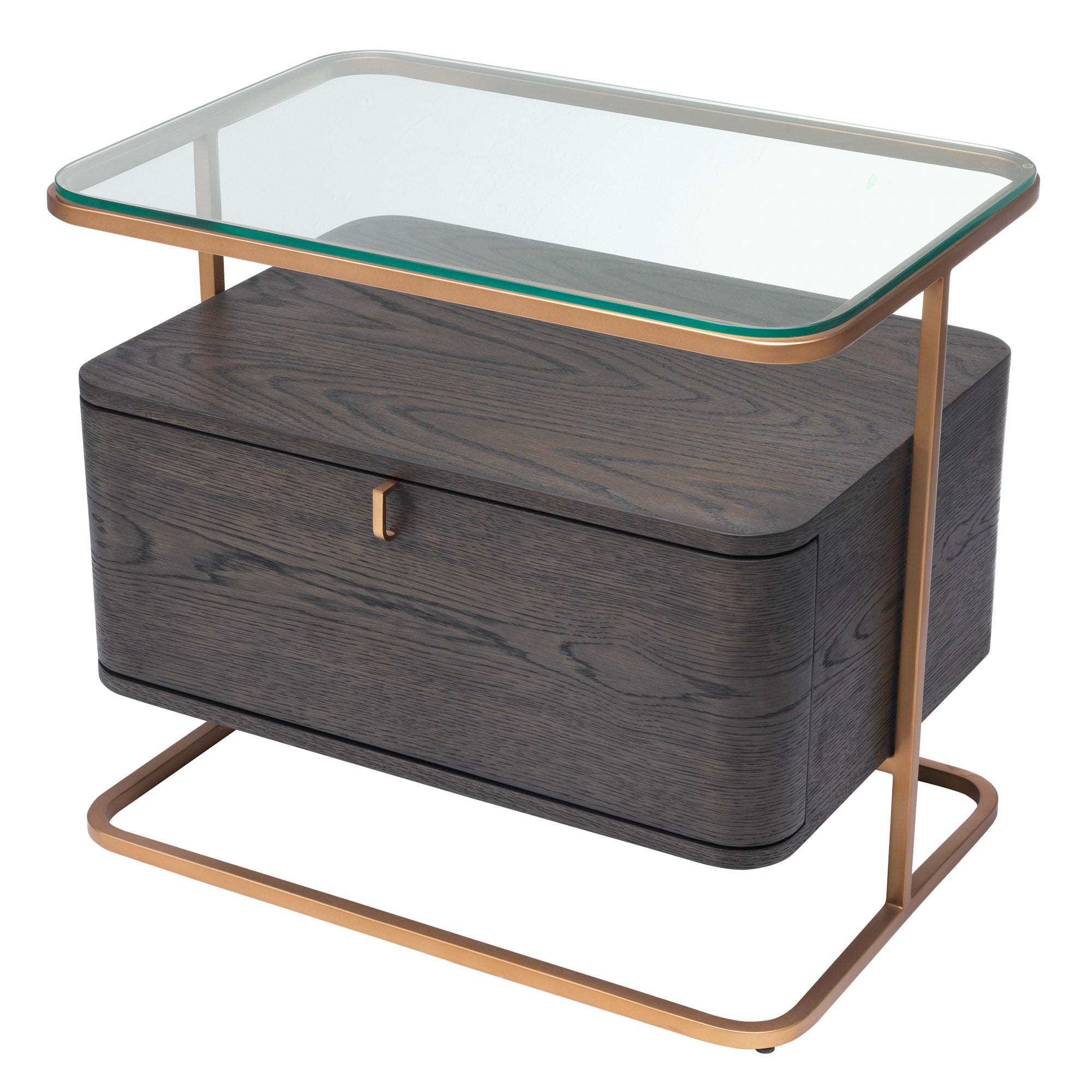 - These nightstand are crafted from wood, finished in mocha crown oak veneer,brushed brass finish,clear glass, which creates their distinctive Eichholtz character.