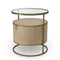 In Nightstand Napa Valley woven washed oak venee, Eichholtz explores a refined design that feels tailored yet effortlessly relaxed within the space. Pairing Bauhaus style with a Mid-Century Modern look, the tapered Napa Valley Nightstand showcases a sleek brushed brass finished frame, a clear glass tabletop and a drum-shaped centerpiece that is lined with woven washed oak veneer, containing a drawer with a stainless steel handle.