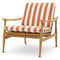 Crafted from natural teak, its warm golden tones develop a beautiful patina over time, enhancing the character of the wood. Colourful striped Florent orange cushions offer a mix of playfulness and sumptuous comfort, perfect for brightening a garden space.