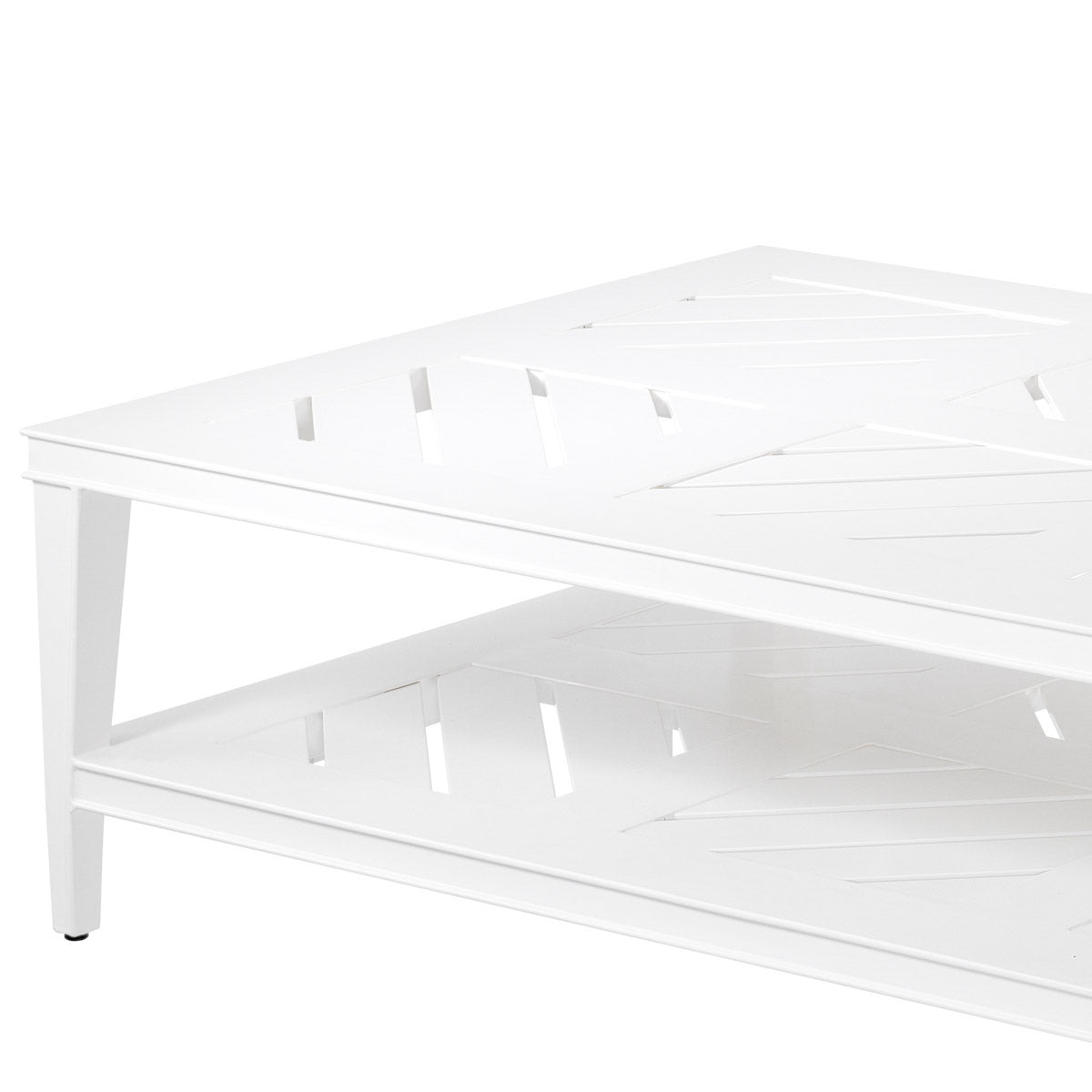 With its sophisticated look and white finish frame, this attractive coffee table with openwork tabletop and lower shelf will make a great focal point for your outdoor living space. Crafted to Eichholtz standards, it balances timeless European sensibility with modern ease — a statement design that layers comfortably into living, dining, or bedroom settings.