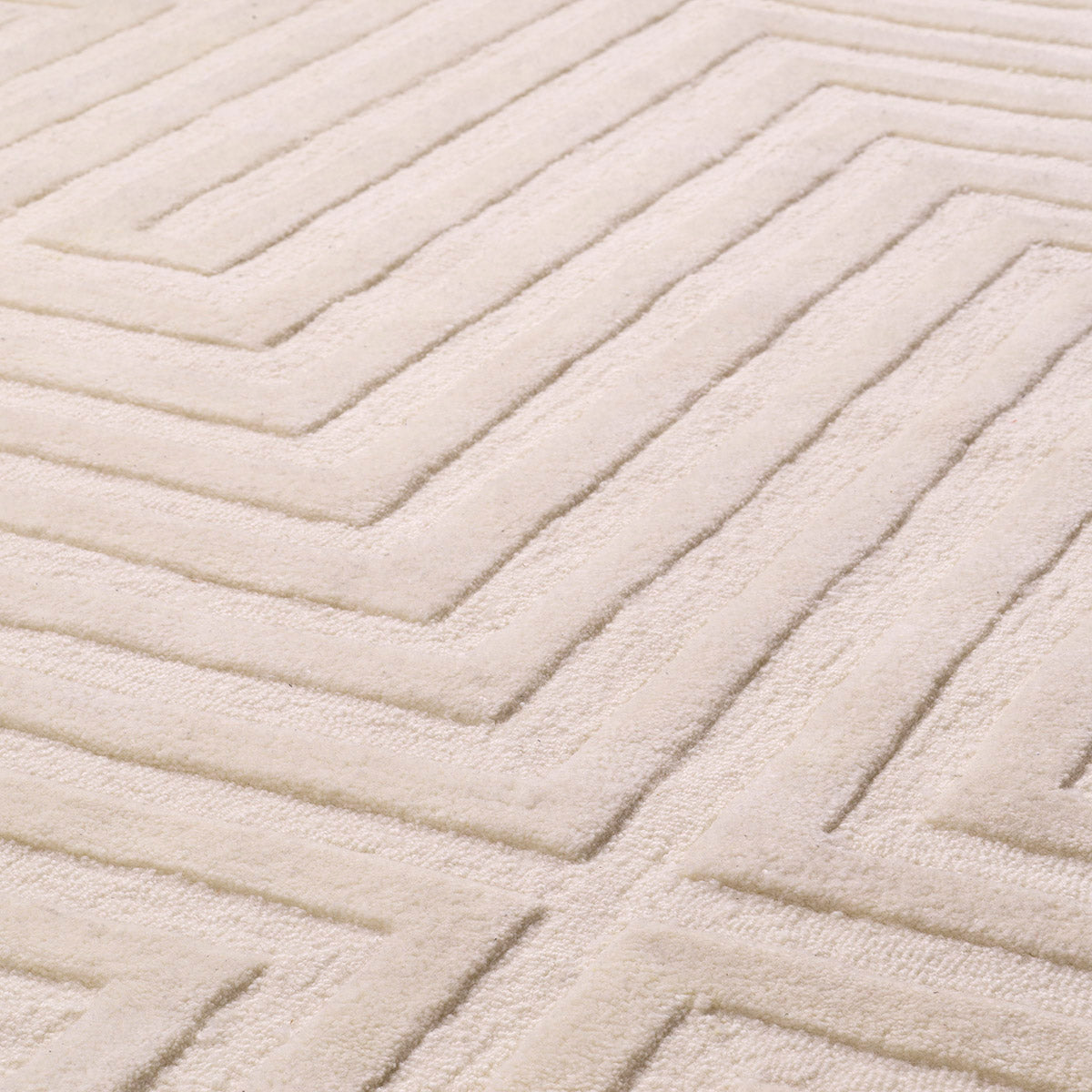 Thoughtful finishes and curated textures invite daily use while preserving a quietly luxurious presence. The design is crafted in Fabric, completed with Ivory, hand tufted, 100% wool pile, showcasing the brand’s focus on texture and depth.