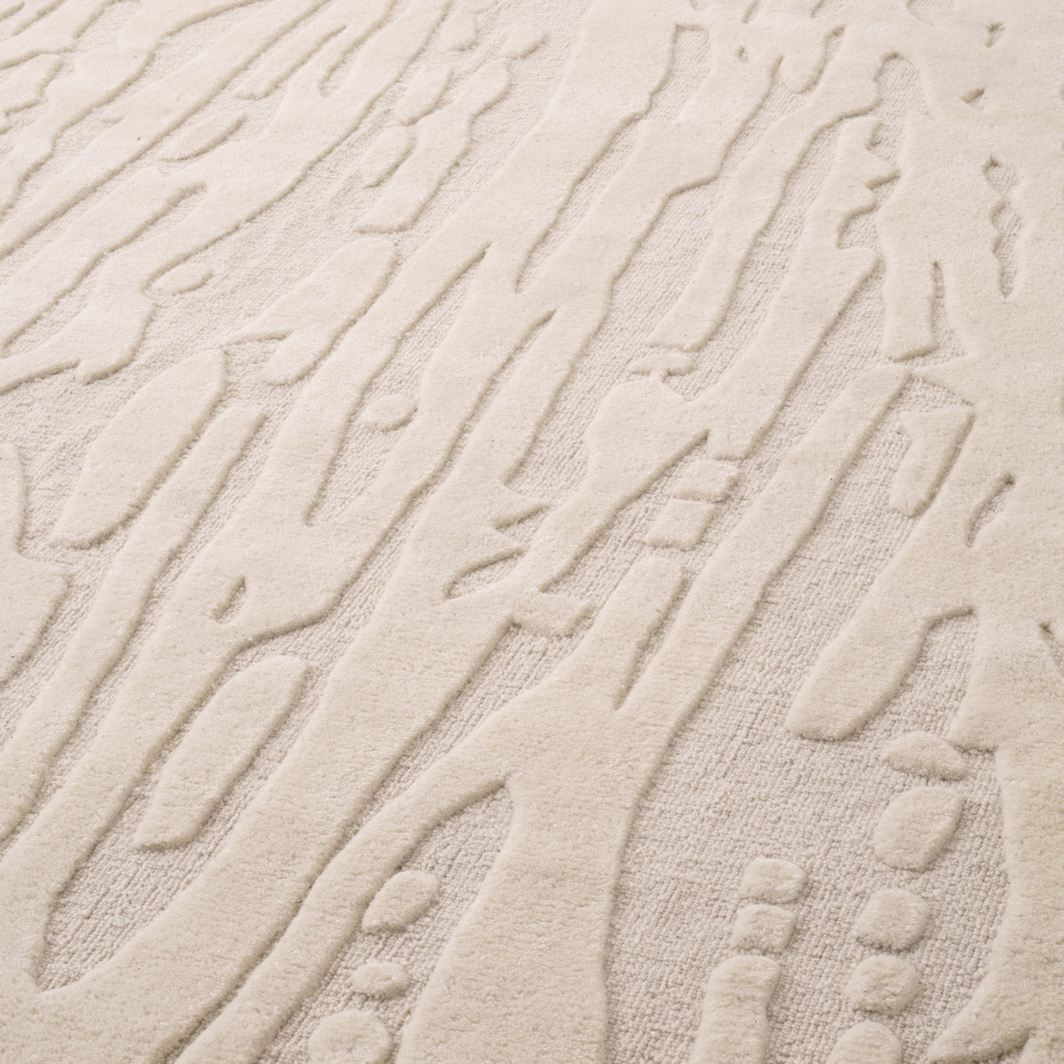 The design is crafted in Fabric, completed with Ivory, hand tufted, 90% New Zealand wool, 7% cotton, 3% polyester pile, showcasing the brand’s focus on texture and depth. Subtle detailing and intended for indoor use/dry locations only ensure it sits naturally within layered, thoughtfully curated schemes. Whether placed in a living area, hallway, or private retreat, this refined design contributes a composed focal point that feels both inviting and refined. Each detail is considered to balance proportion, surface, and silhouette, resulting in an object that feels at once contemporary and timeless. The overall impression is one of understated opulence, allowing the surrounding architecture, art, and lighting to complete the story of the space.
