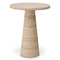 Crafted from travertine, a terrestrial limestone, this sculptural side table features a rounded top resting over a conical base. With its beautiful curving lines, it elevates the aesthetics of any setting.