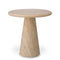 Crafted from travertine, a terrestrial limestone, this sculptural side table features a rounded top resting over a conical base. With its beautiful curving lines, it elevates the aesthetics of any setting.