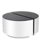 Each table has a base of polished stainless steel and a half round tabletop of bevelled black glass. Personalise to your liking: use each table as a single design, near the armrest of your sofa, transform it into a night stand, place it against a wall as a low console, or pair together to form a round side table.