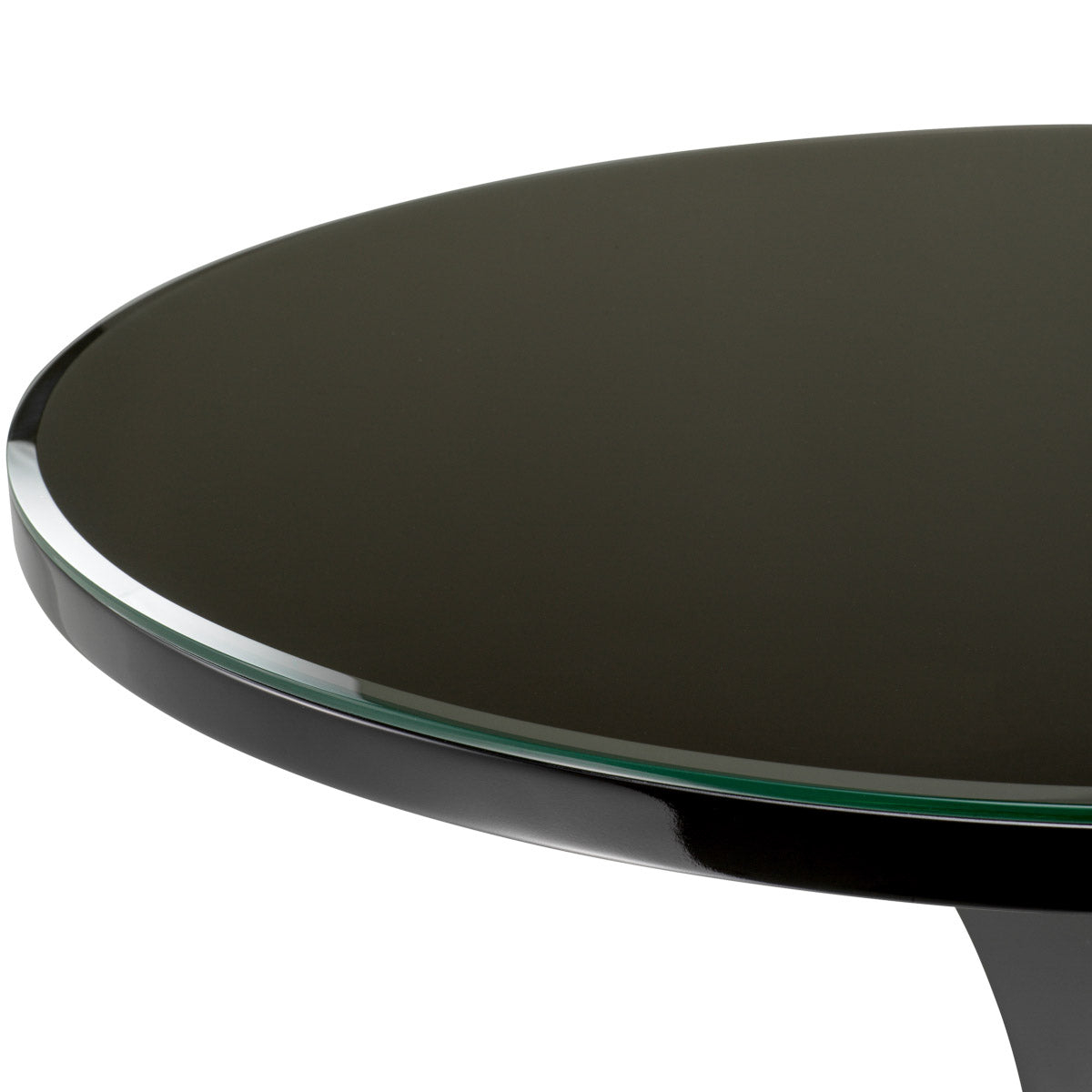 - These side table are crafted from wood, finished in piano black finish,clear glass top, which creates their distinctive Eichholtz character.