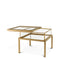 Comprising a brushed brassed finished frame, it features a sliding display top of clear tempered glass and a bottom of mirrored glass. Crafted to Eichholtz standards, it balances timeless European sensibility with modern ease — a statement design that layers comfortably into living, dining, or bedroom settings.