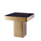 This striking end table with rounded corners is a fine companion with Art Deco figures. It is characterised by a sturdy base with brushed brass finish and a black ceramic tabletop with marble look design with a brushed brass rim.