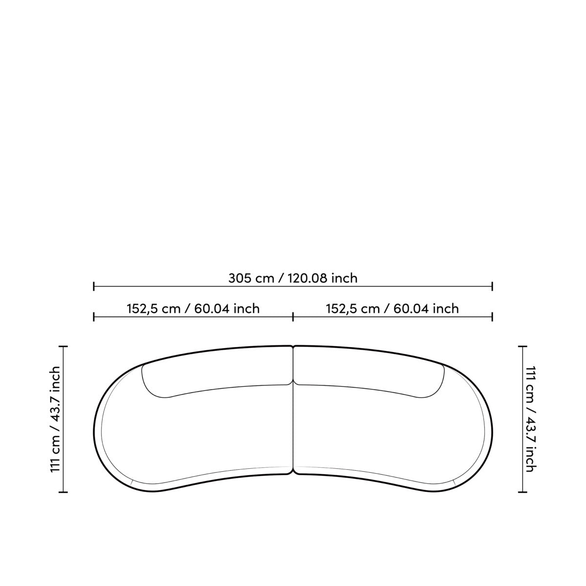 - Dimensions: W. 120.08″ | D. 43.70″ | H. 27.56″ | SD. 28.35″ | SW. 90.16″ | SH. 16.93″