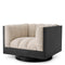 This iconic design, swathed in skyward sand fabric, radiates tranquillity. The sophisticated black swivel base adds a touch of modernity, striking a balance between contemporary and timeless design.