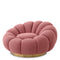 Looking like an open flower, this delightful accent chair with Bouclé rose upholstery will be a highly decorative addition to your lounge or bedroom. It is mounted on a brushed brass swivel base.