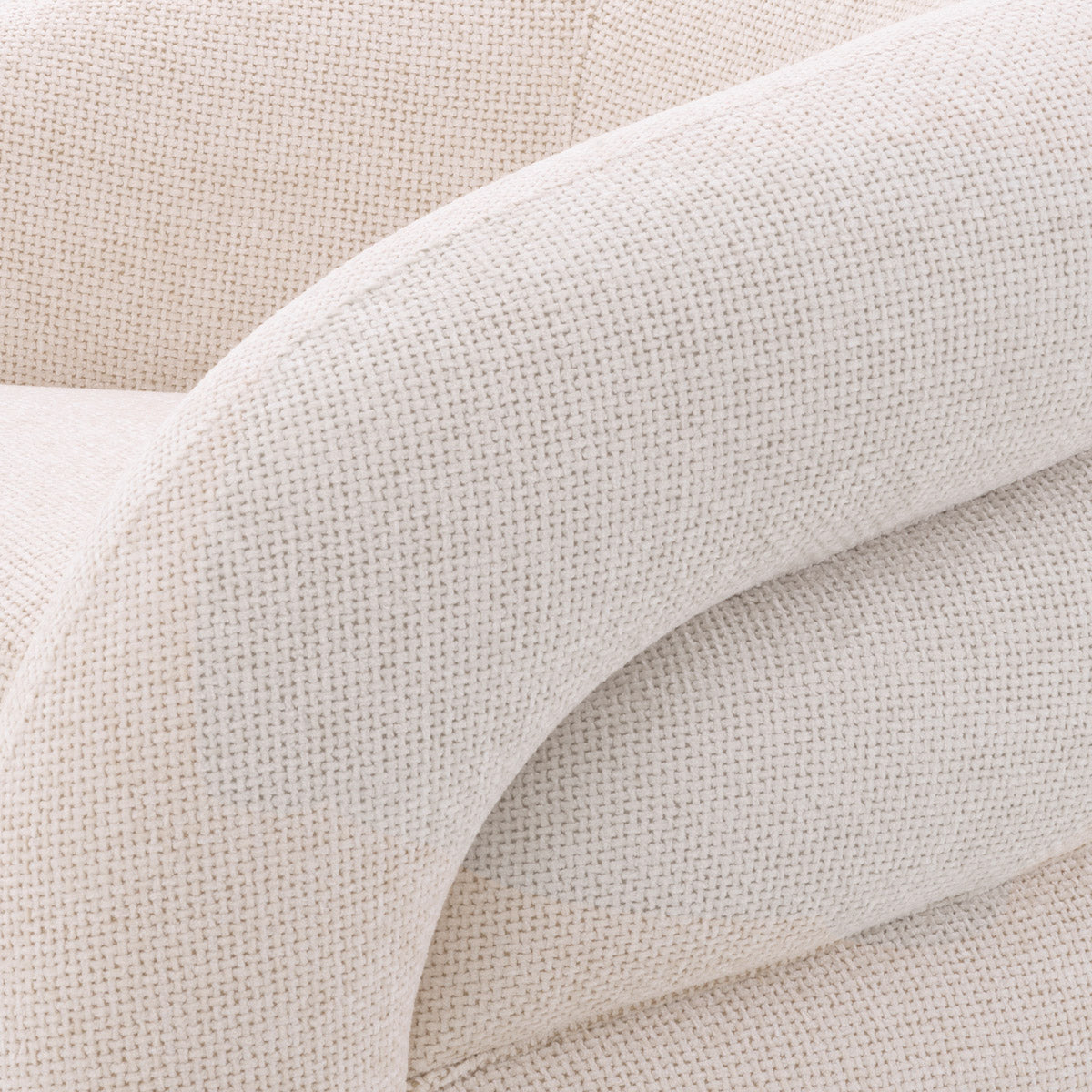 Thoughtful finishes and curated textures invite daily use while preserving a quietly luxurious presence. The design is crafted in Fabric, completed with Lyssa off-white, swivel base, showcasing the brand’s focus on texture and depth.