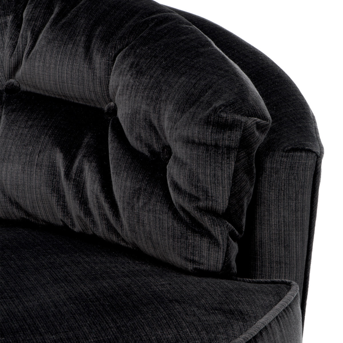 Featuring a deep foam interior for impressive comfort, it’s beautifully upholstered in soft Bolard black velvet and neatly finished with piping. Crafted to Eichholtz standards, it balances timeless European sensibility with modern ease — a statement design that layers comfortably into living, dining, or bedroom settings.