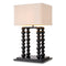 These orb-like pillars support a crisp, rectangular shade of white linen, whose clean geometry contrasts the lamp’s tactile base with elegant restraint. Set upon a polished plinth, Bentley merges modernist structure with a sense of decorative sophistication.