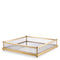 This chic square tray with mirror glass bottom and clear glas rods has an antique brass finish. Ideal as a trinket tray for keys and the like, or as a vanity tray for make-up and perfume bottles.
