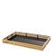 This stylish tray can be used along with pillar candles, tealights and succulents to make attractive table arrangements. Featuring a black glass bottom shelf and open-sided gold finish surround, this rectangular display tray is the perfect accessory for a dressing table.