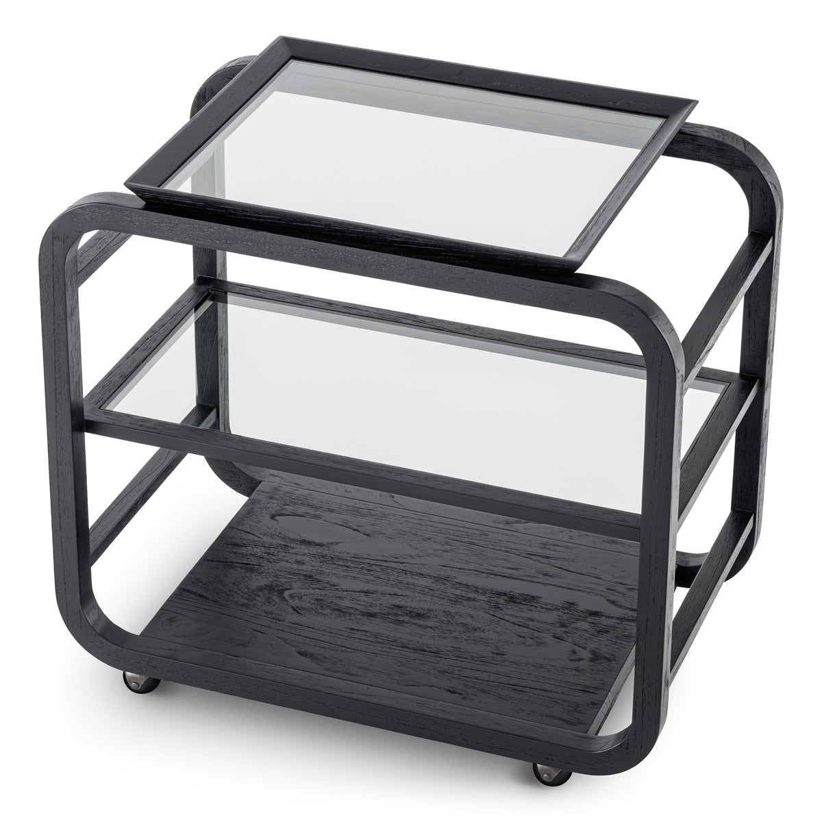 Discover the Mayfair Trolley, an Eichholtz masterpiece that combines timeless elegance with effortless functionality.Crafted from solid wood in a black finish, it features a detachable tray and smooth-rolling wheels for versatile mobility.