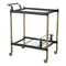 With its vintage brass finish and black leather, this trolley exudes an air of timeless elegance. The clear beveled glass shelves add a touch of sophistication, while the wheels provide effortless mobility.