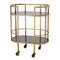 This fabulous bar cart has an elegant curved brushed brass finished frame that holds two levels of dark smoked glass. Perfect for pouring and storing.