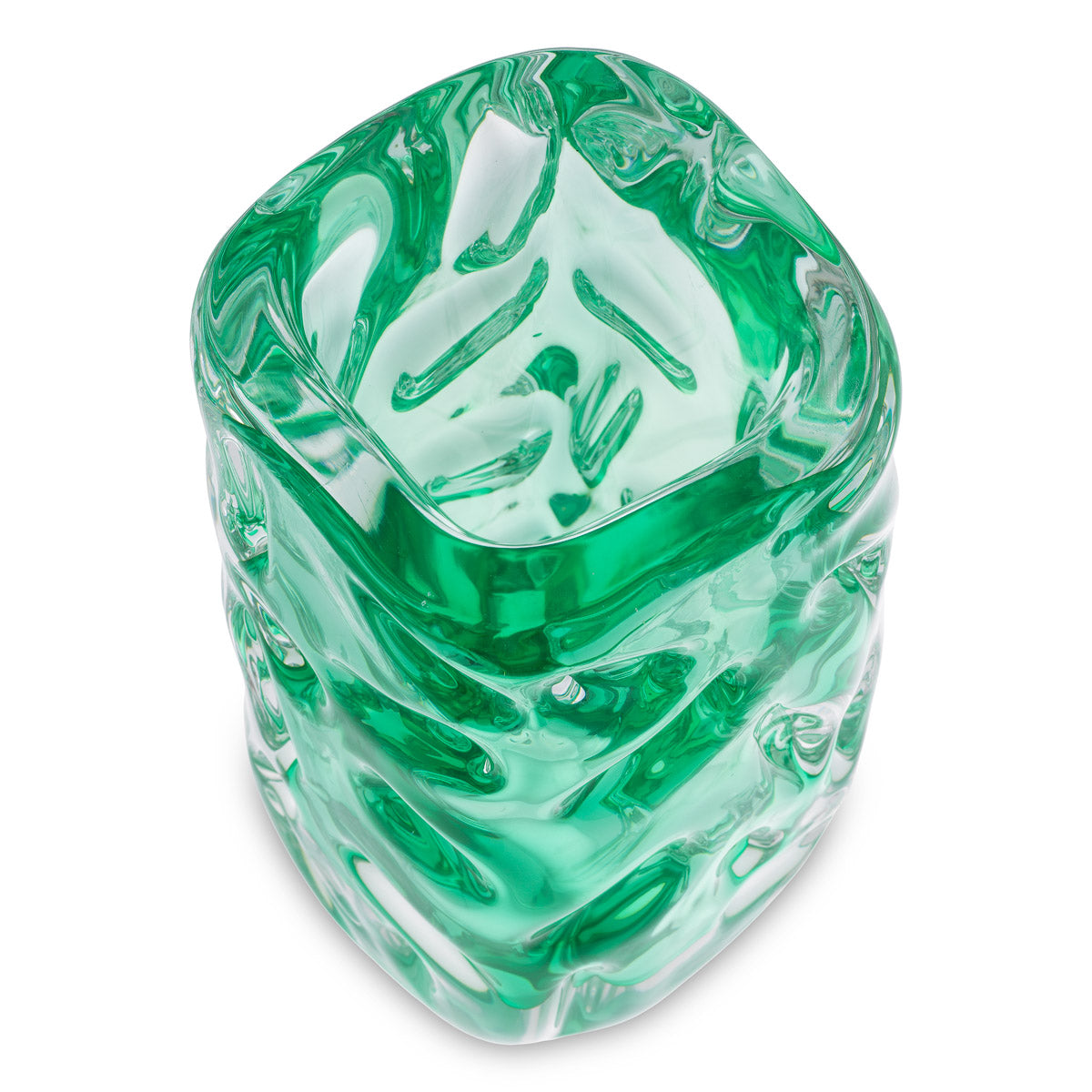 - Finish: Green, Hand Blown Glass